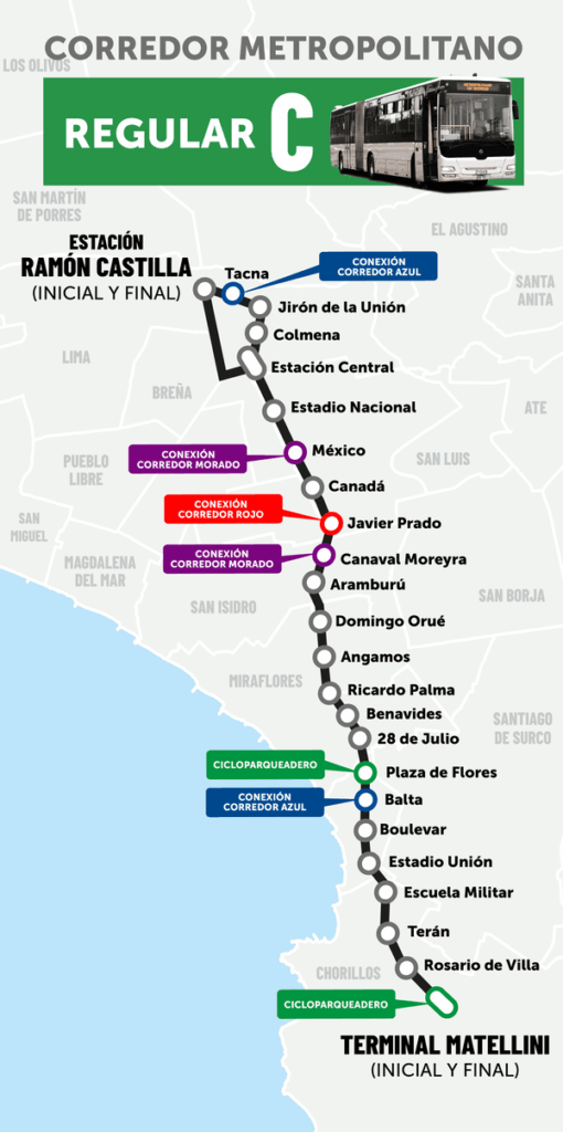 - Aramburú: conexión con el Corredor Amarillo, que va por la Av. Universitaria.